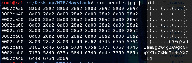 Ok time to take another step back. During initial enumeration I did quickly take a look at port 80. All there was is a jpg and quick look at the source didn't turn anything up. Considering the box is called Haystack and the picture was ominously named needle.jpg I figured it warranted a closer look. Sure enough within 30 seconds I find something very interesting.