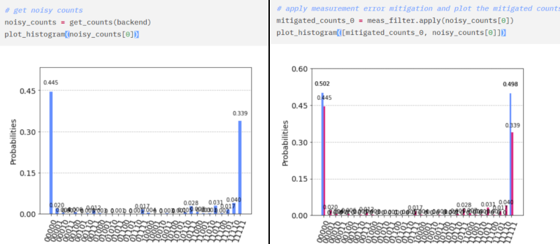 As mentioned in the Challenge 2 notebook "The goal of this exercise is to create a calibration matrix 𝑀 that you can apply to noisy results (provided by us) to infer the noise-free results". With our callibration matrix created we can proceed through the questions. First we visualize the provided "noisy" data, apply our error correction, then finally answer the questions by choosing which graphs resembled our corrected data sets.