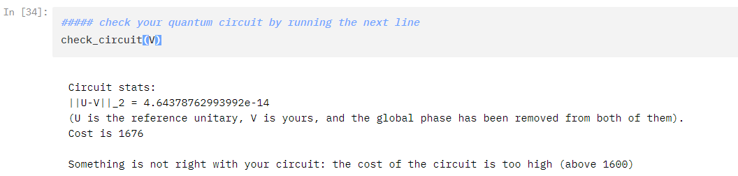 At least our theory works and we have something to work with. It looks like even with the highest optimization level set on transpile we still have too high of a complexity cost. We will need to see what we can do to make that more efficient.